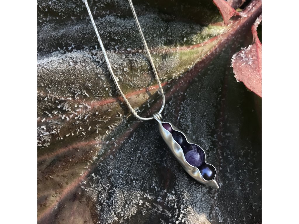 Dark Pea Necklace - Silver, Pearls, Amethyst, Hematite